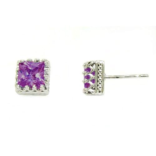 Sterling Silver 925 Amethyst CZ Square Shape 7mm Princess Cut Stud Earrings Review
