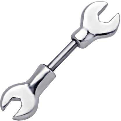 HELIX CARTILAGE PIERCING EARRING. This cartilage earring is very unique and sure to raise a smile. The earring gives the impression a small silver wrench is piercing your ear. It fits very snugly and comfortably. It is especially cool as you can see the design from the back of your head, or when you are facing someone. The barbell that passes through your piecing is 16 Gauge, the standard size for cartilage piercing. The barbell is made from 316L Surgical Grade Stainless Steel and the charms are crafted from 925 Sterling Silver. Barbell Size: 16 Gauge (1.2mm) Barbell Length: 1/4" (6.4mm)