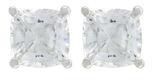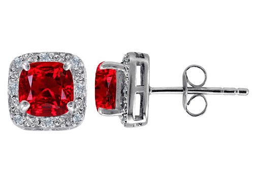 3.08 cttw 14K White Gold Plated 925 Sterling Silver Lab Created 7mm Cushion Cut Ruby and Genuine Diamond earring Studs Review