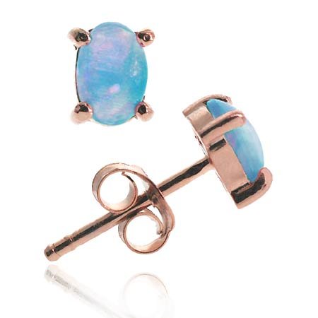 18K Rose Gold over Sterling Silver Created Blue Opal 6x4 Oval Stud Earrings Feature