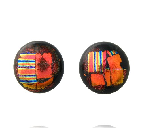 Sterling Silver Dichroic Glass Warm Colors Pattern on Black Stud Earrings Review
